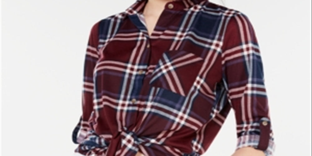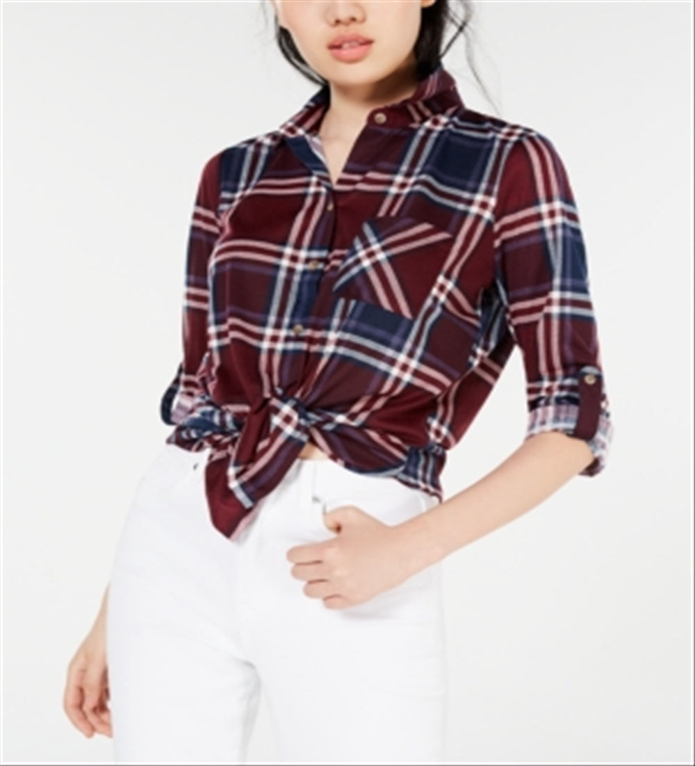camisa xadrez com aba dobrada Polly & Esther Juniors - roupas infantis - tops