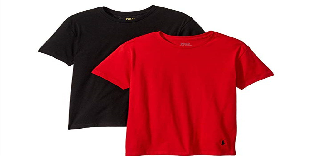 Pacote com 2 cuecas Ralph Lauren Boy's Crew Tee - Vermelho/Cinza, tamanho médio