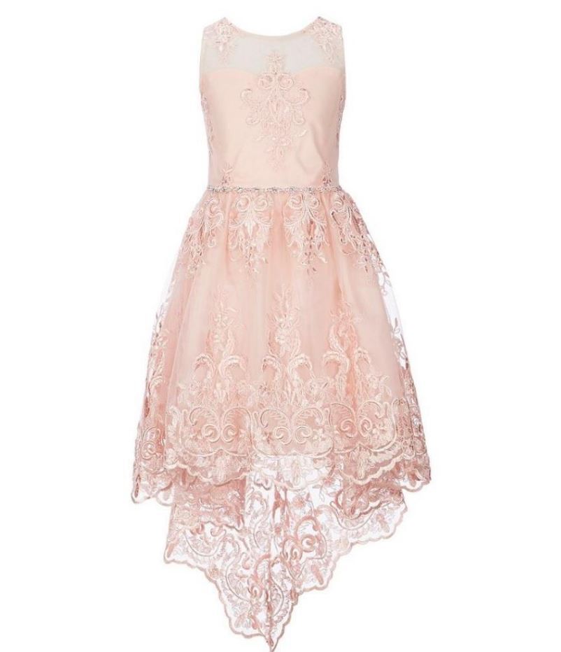 Vestido ilusão de renda para meninas grandes, edições raras, rosa, tamanho 10