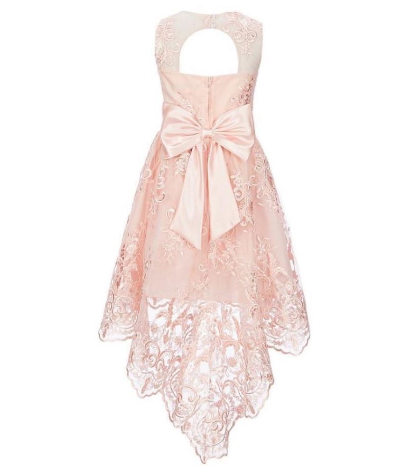 Vestido ilusão com laço alto e baixo para meninas, edição rara | Rosa | Tamanho 10 | MATERIAL; 100% POLIÉSTER | COMPRIMENTO; 41 AXILA A AXILA; 13 DEPARTAMENTO; MENINA | FECHAMENTO DE ZÍPER E BOTÃO NAS COSTAS | CINTURA ENFEITADA Estilo princesa com fecho de zíper nas costas.