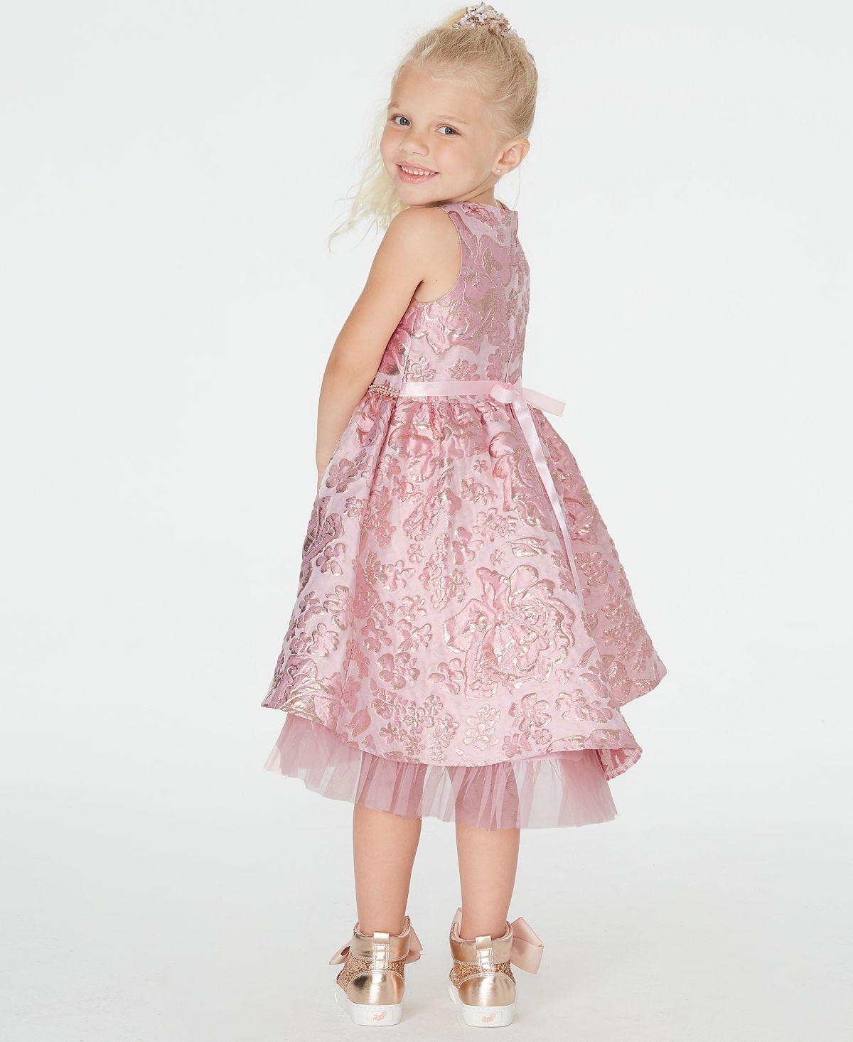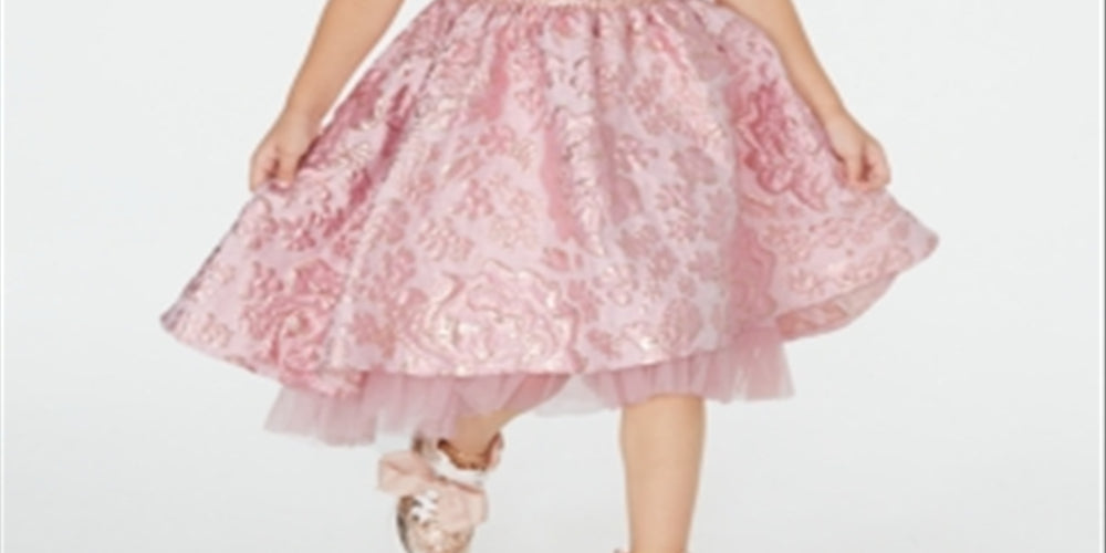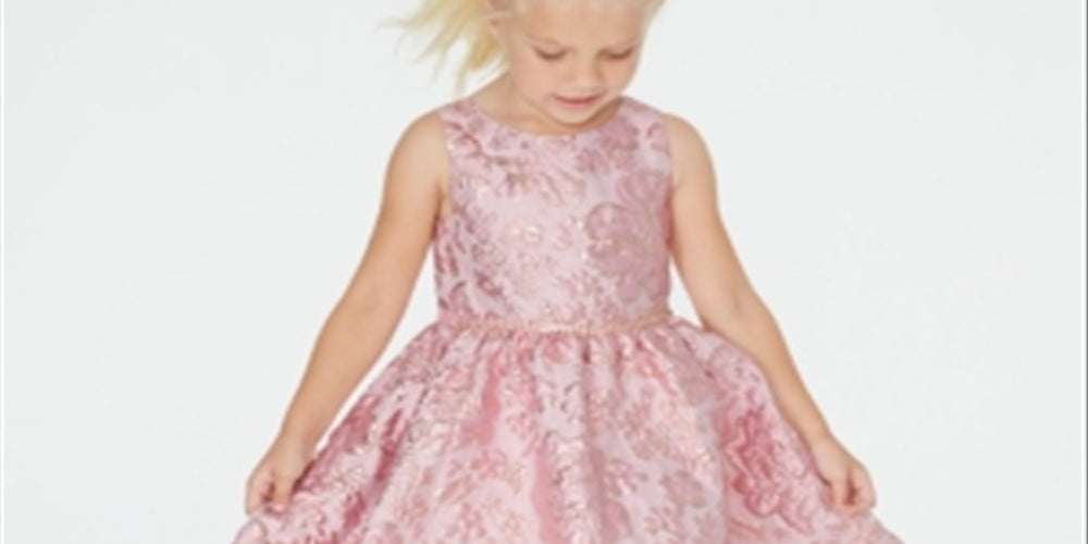 Vestido brocado justo e evasê para meninas, tamanho 5, rosa, da Rare Editions