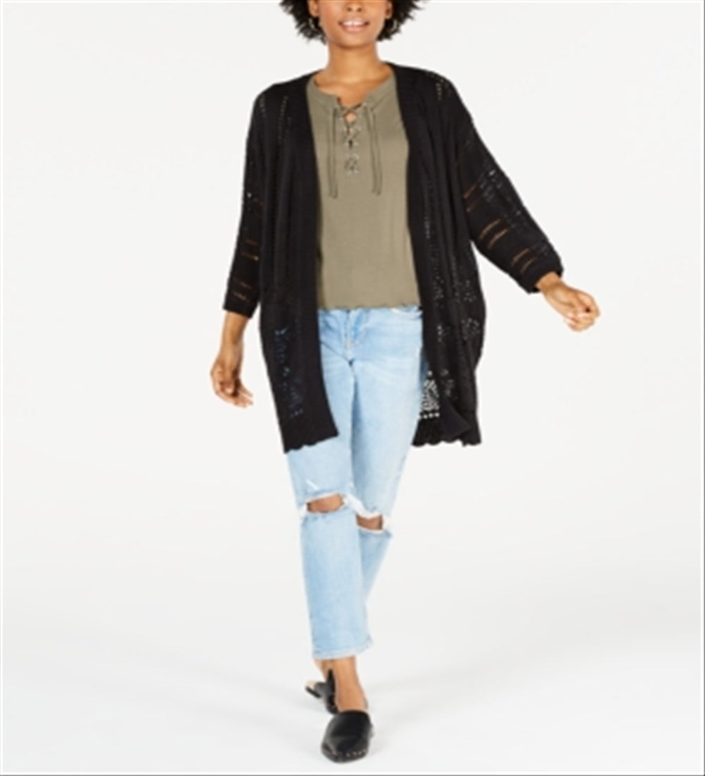 Cardigan Pointelle com frente aberta para crianças, tamanho G, preto