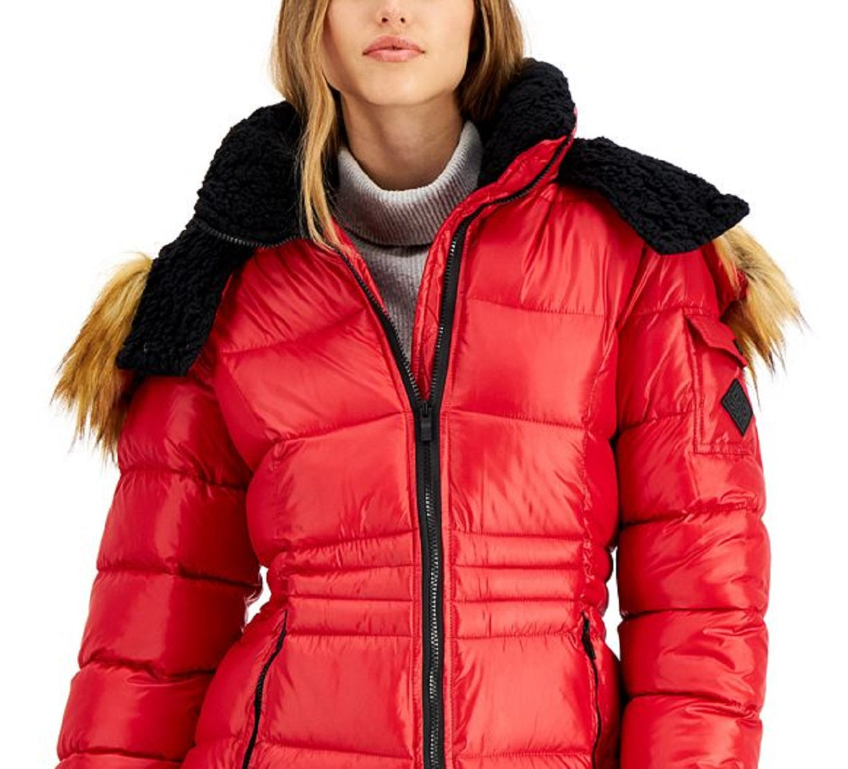 Dois bolsos com zíper na cintura | Mangas compridas com punhos de malha para maior proteção; detalhe de abertura para o polegar | Resistente à água | Forrado | Importado | Gola alta e capuz removível com acabamento em pele sintética removível; fecho de zíper frontal
