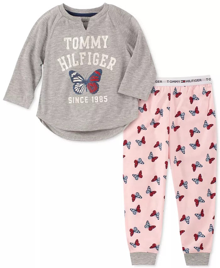 Top: gola alta; estampa gráfica na frente | Calça: cós elástico com logo; bainha com punho | Poliéster | Lavável na máquina | Importado