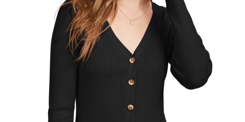 Cardigan curto canelado Ultra Flirt Juniors, preto, tamanho X-S
