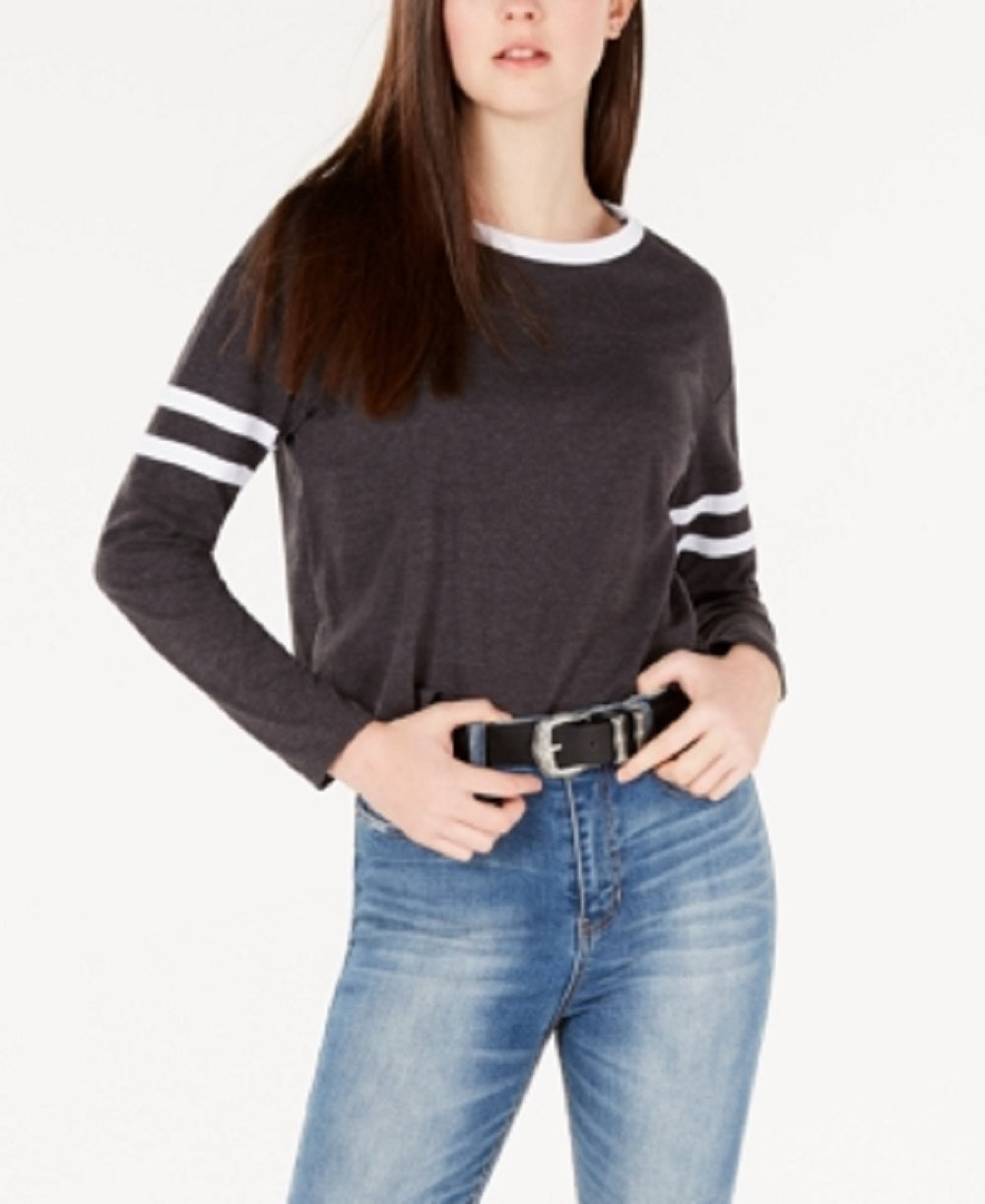 Mostre seu lado doce e esportivo com a camiseta justa da Ultra Flirt, desenhada com listras universitárias