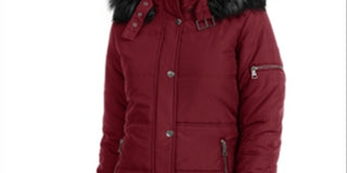 Casaco acolchoado com capuz e acabamento em pele sintética Maralyn & Me Junior, tamanho médio, marrom