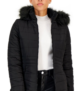 Casaco acolchoado com capuz e pele sintética Maralyn & Me Junior's, preto, tamanho médio