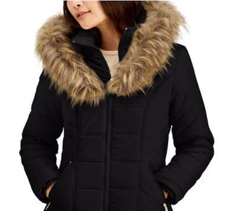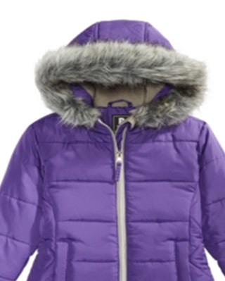 S Rothschild & Co Big Girl's Jaqueta acolchoada com capuz e acabamento em pele sintética Roxo Tamanho Médio