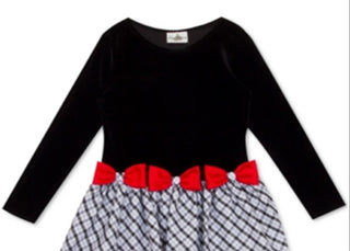 Vestido de veludo com cintura baixa e laço para meninas, edição rara, preto, tamanho 4T