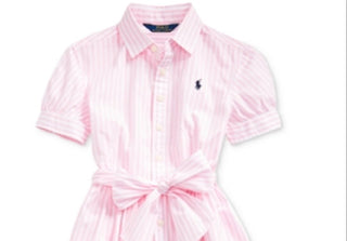 Vestido camisa de popeline listrado Carmel Bengal da Polo Ralph Lauren para meninas, rosa, tamanho 14