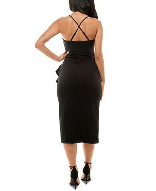 Vestido justo assimétrico e franzido infantil Emerald Sundae, preto, tamanho XS