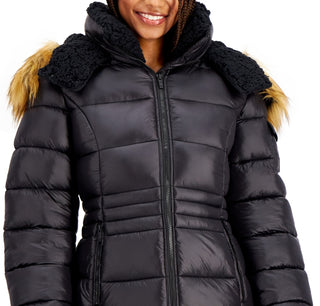 Casaco acolchoado com capuz e acabamento em pele sintética Steve Madden Junior, preto, tamanho extragrande