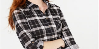 Camisa xadrez com aba dobrada Polly & Esther Junior, preta, tamanho extragrande