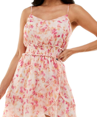 Vestido infantil com estampa floral e cintura franzida, cor rosa, tamanho extrapequeno, da Emerald Sundae