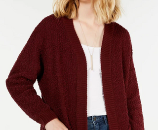 Cardigan texturizado com frente aberta para jovens, tamanho vinho, médio