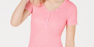Camiseta Henley com decote em V Planet Gold Juniors, rosa, tamanho grande
