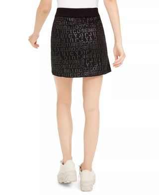 Minissaia jeans estampada com logotipo da Juicy Couture Junior, preta, tamanho 26
