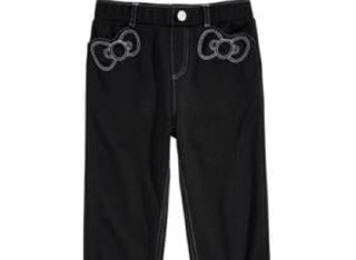 Leggings de malha ponte com laço Hello Kitty para meninas, tamanho 2T, pretas