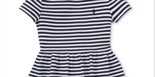 Vestido Ralph Lauren Infantil Feminino Listrado Gola Alta Manga Curta Azul Tamanho Grande