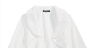 Cardigan com acabamento em pele sintética e corações de lantejoulas para meninas grandes, tamanho médio, branco