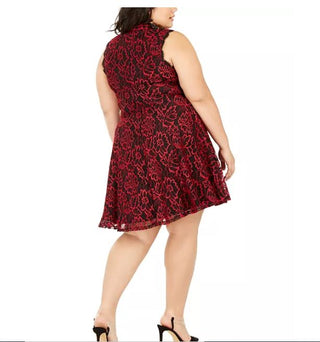 Vestido Plus Size City Studios Juniors com Renda e Flare Vermelho Tamanho 16 W