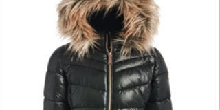 Jaqueta acolchoada Stadium para meninas Michael Kors com capuz removível com acabamento em pele sintética, preta, tamanho 2T