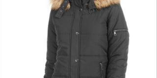 Casaco acolchoado com capuz e acabamento em pele sintética Maralyn & Me Junior, cinza, tamanho extragrande