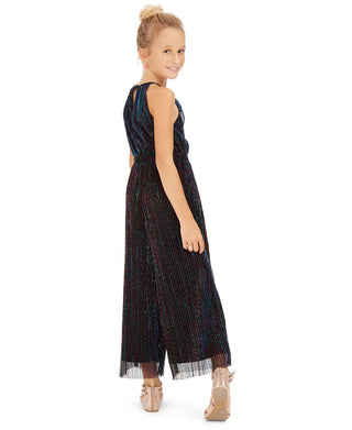 Macacão listrado metálico com lantejoulas e corações para meninas grandes, azul, tamanho GG