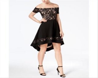 Vestido curto City Studios Juniors, ombro caído, preto, tamanho 16 W