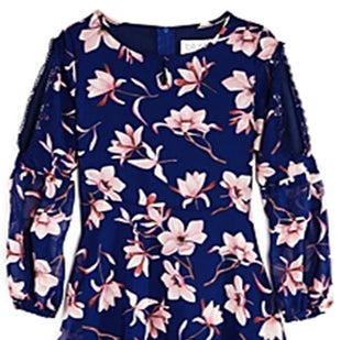 Vestido floral feminino Us Angels com mangas curtas, azul, tamanho 16