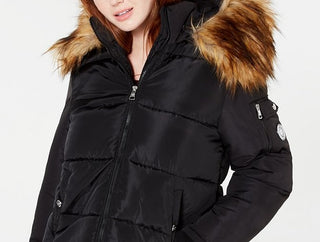 Casaco acolchoado com capuz e acabamento em pele sintética Madden Girl Junior, preto, tamanho X-S