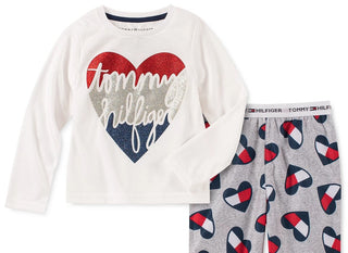 Conjunto de pijama Tommy Hilfiger para bebês meninas pequenas e grandes, 2 peças, com estampa de coração, branco, tamanho 6-7