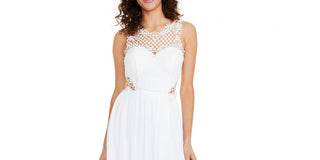 Vestido de festa de formatura com corpete de contas e chiffon branco tamanho 11