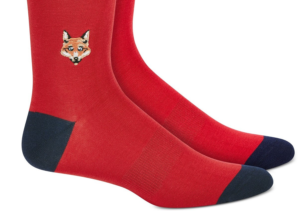 Meias masculinas Bar III Bordadas Fox Vermelhas Tamanho Regular