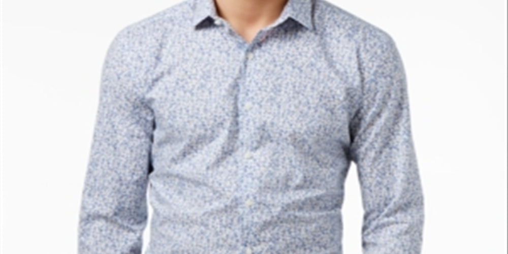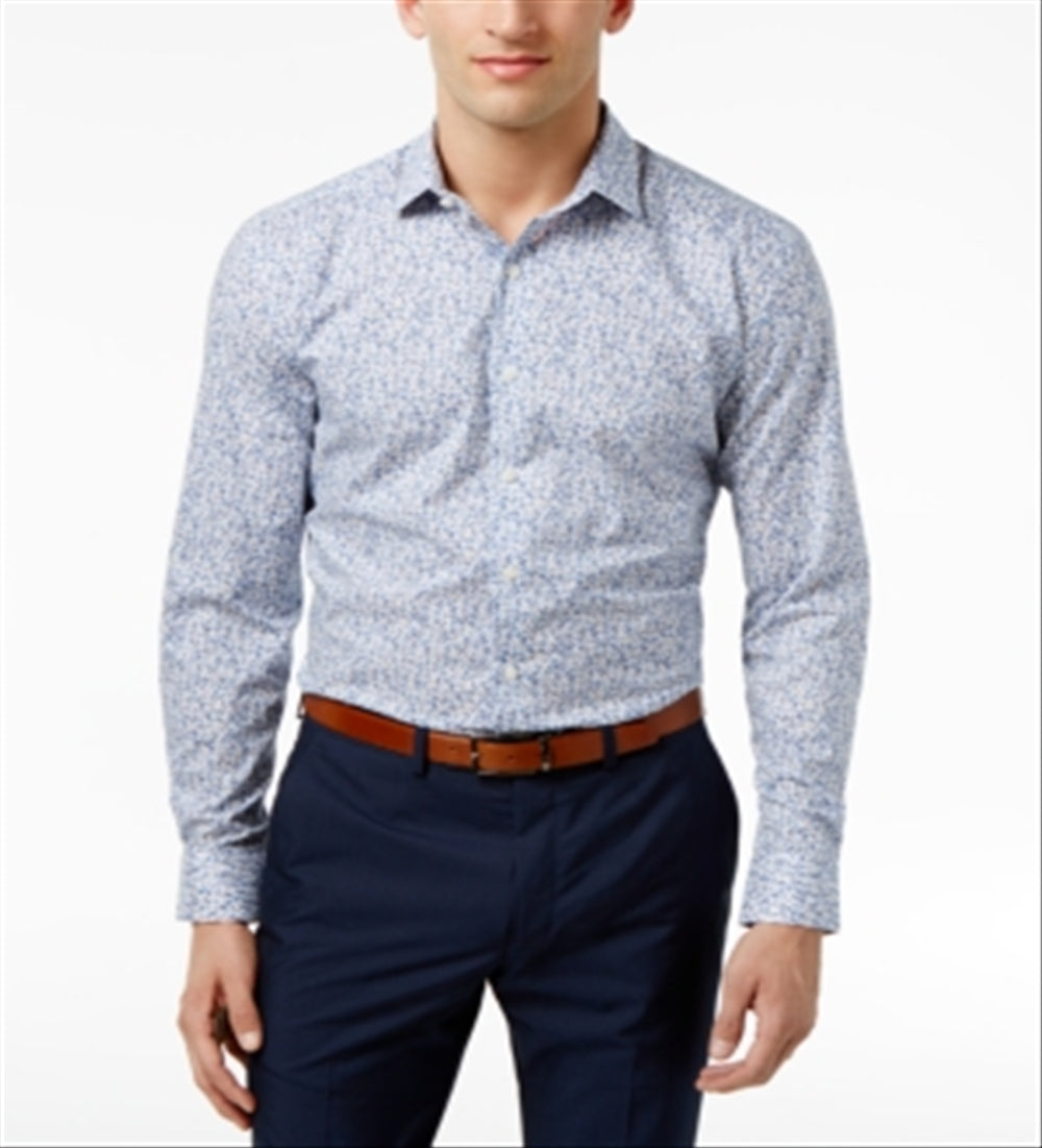 Camisa social masculina Bar III com gola floral e corte slim, azul, tamanho 15x32x33