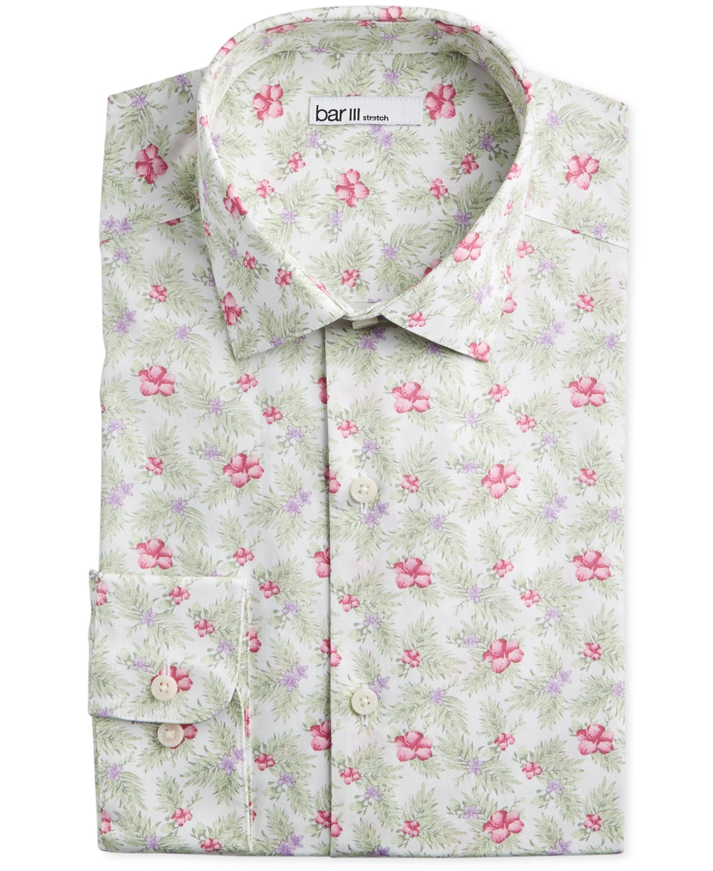 Camisa masculina Bar III com estampa floral e ajuste slim, branca e rosa, tamanho P
