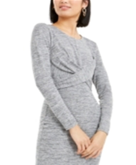 Chique e modelador com faixas cruzadas na frente | este vestido de malha Bar III pode ser usado do escritório para eventos com facilidade. | Comprimento aproximado de 43 cm, do centro do pescoço até a bainha | Gola redonda; silhueta ajustada | Estilo pulôver | Detalhe cruzado na frente