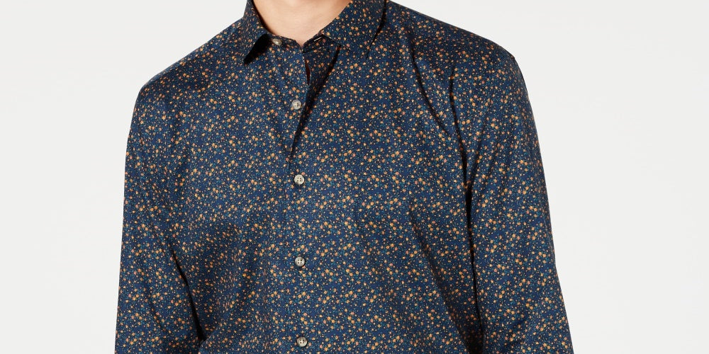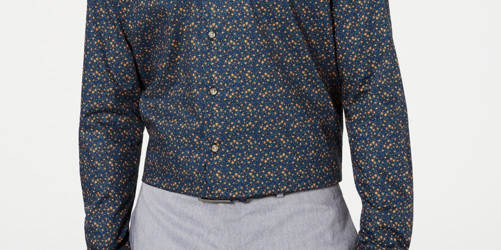 Camisa social masculina Bar III azul marinho, fácil de cuidar, gola slim fit, tamanho 16,5 x 32-33