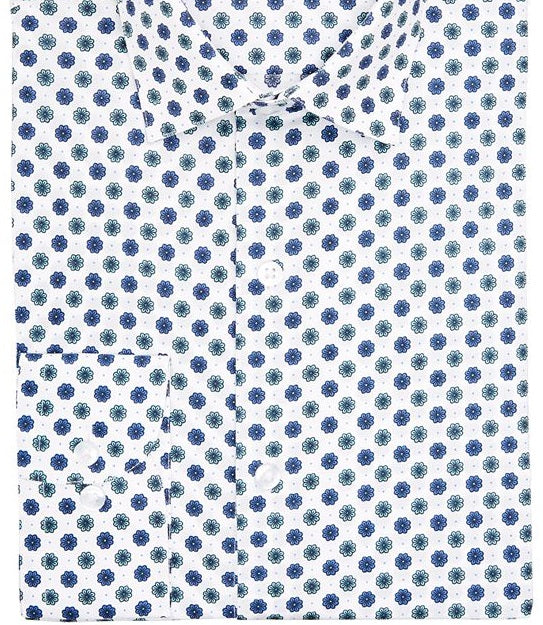 Gola aberta | Punhos com botões | Padrão de bolinhas margaridas