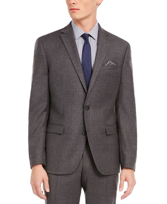Terno masculino Bar III de abotoamento simples mesclado, corte slim, mistura de lã, cinza, tamanho 42