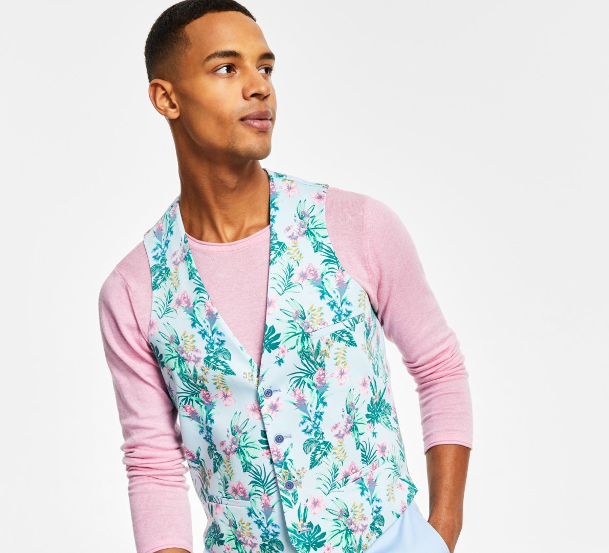 Dê um toque de frescor ao seu visual refinado com a ousada estampa floral apresentada neste colete chamativo da Bar III. | Corte justo nos ombros | peito e cintura com cavas mais altas | Jaqueta combinando vendida separadamente | Sem lapela | Fecho de quatro botões | Dois bolsos embutidos frontais inferiores; bolso embutido no peito esquerdo