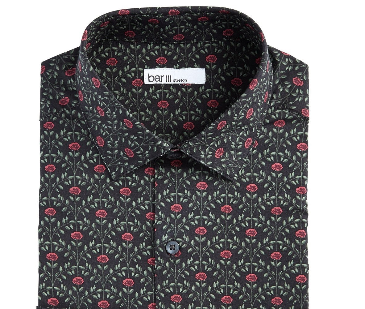 O corte slim é mais justo no peito, nas mangas e na cintura; apresenta cavas e mangas finas | Gola aberta | Estampa floral