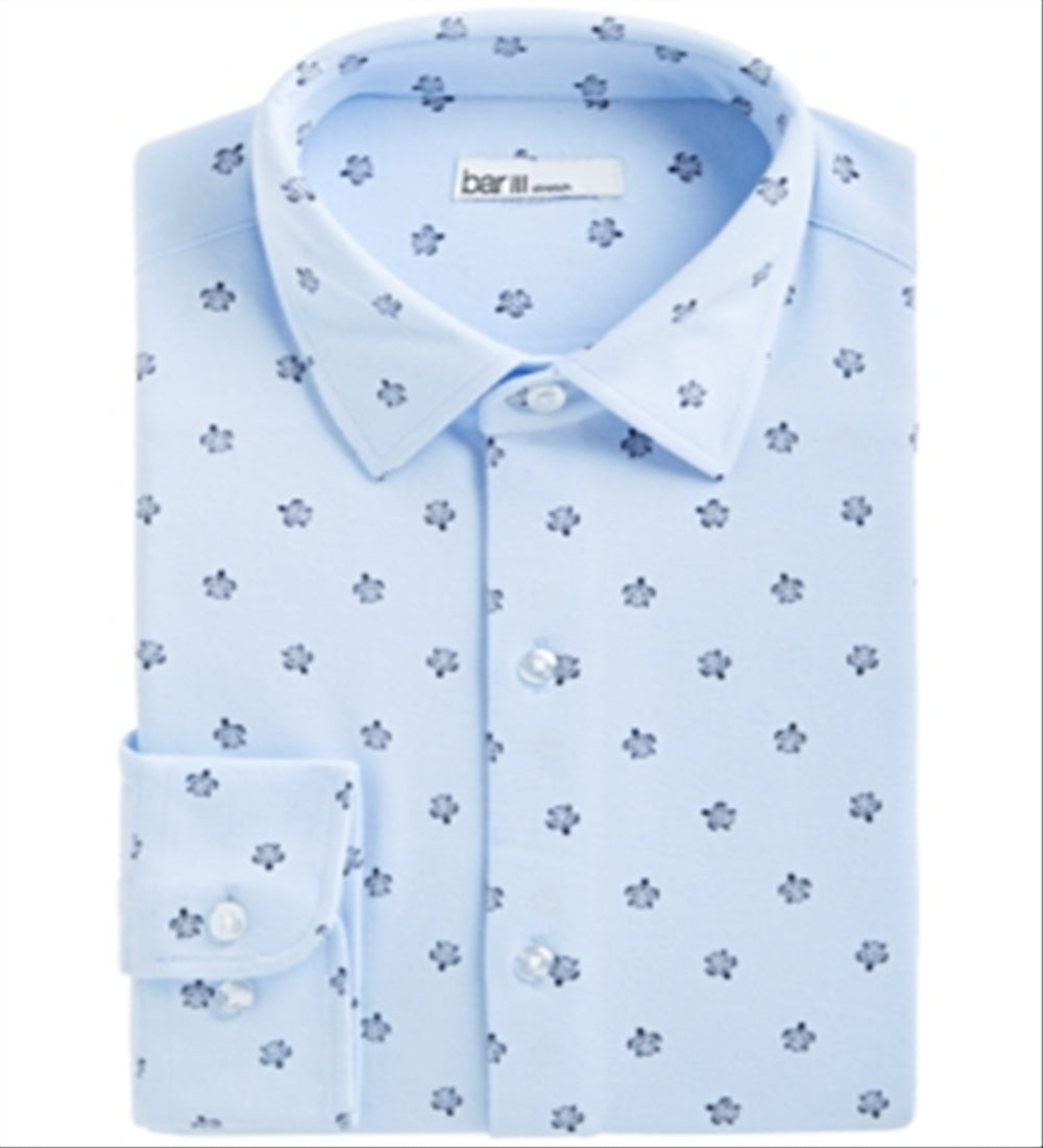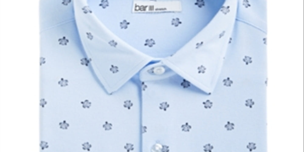 Camisa social masculina Bar III Slim Fit com estampa de tartaruga marinha elástica, azul, tamanho GG