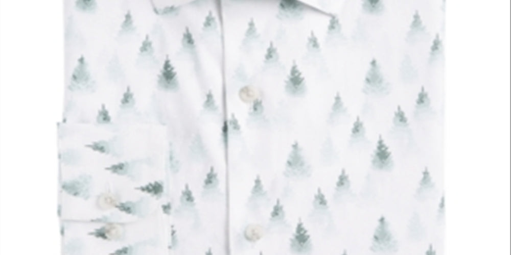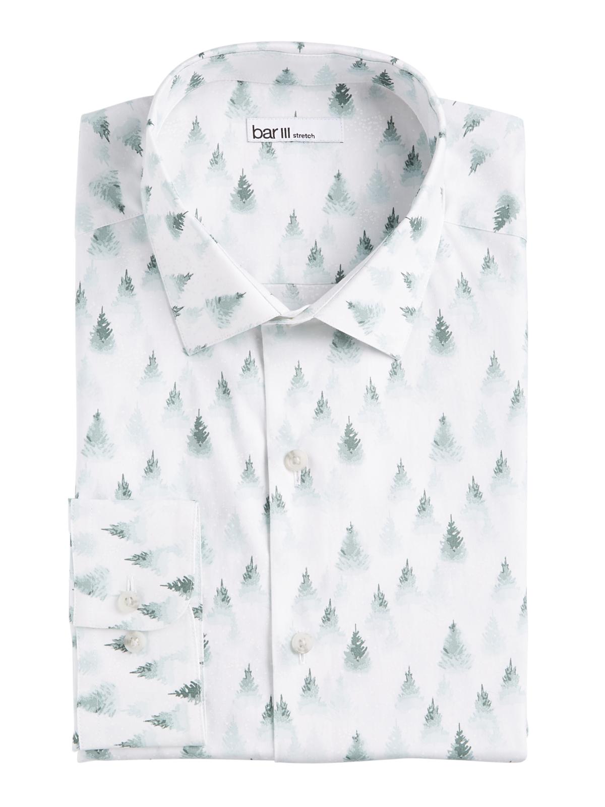 Camisa social masculina Bar III com estampa de floresta nevada elástica, tamanho verde, 14x14