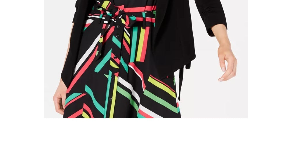 Jaqueta feminina Bar III com frente aberta e amarração lateral, preta, tamanho médio