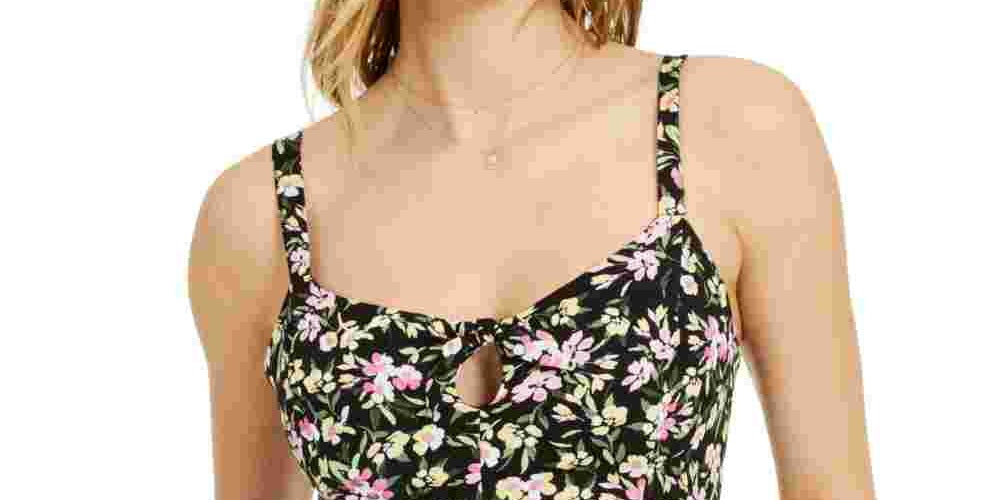 Decote redondo com fecho de amarrar; zíper lateral oculto | Bainha peplum; franzido no centro das costas | Alças finas | Revestimento e forro: poliéster | Lavável à máquina