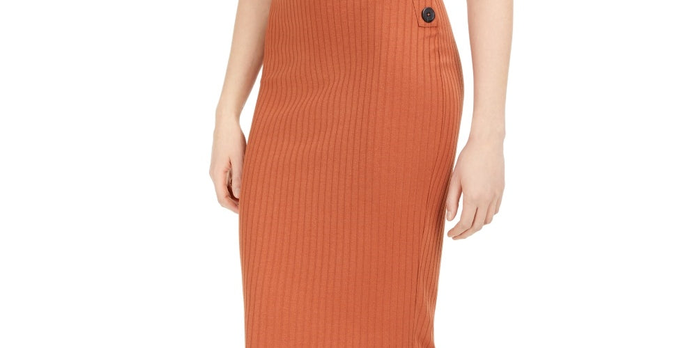 Aproximadamente 73 cm de comprimento; Silhueta midi ajustada | Estilo pull-on; cós elástico | Malha canelada; detalhes de botões laterais | Poliéster/rayon/elastano