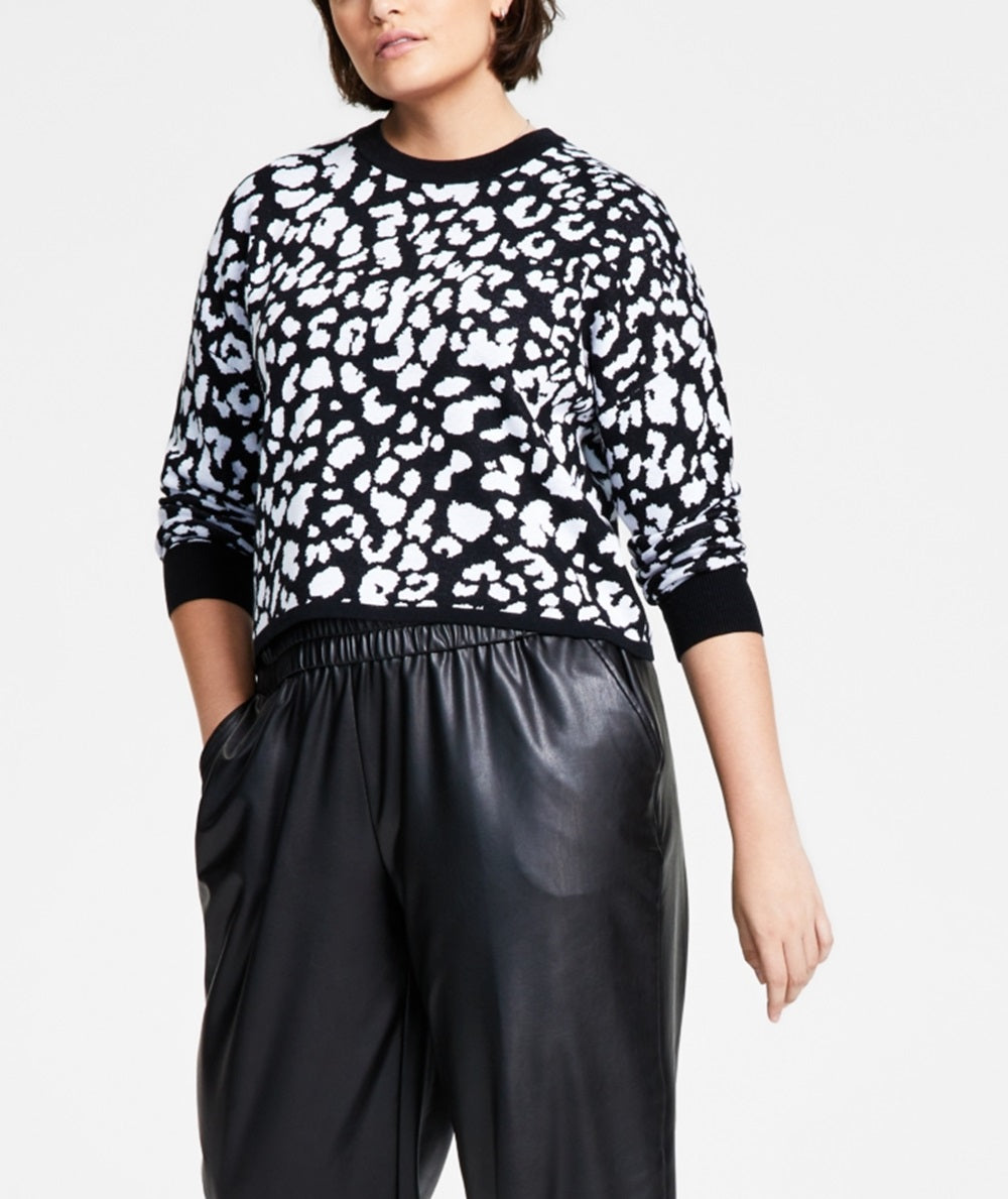 Suéter feminino Bar III Cheetah Jacquard preto tamanho X-G