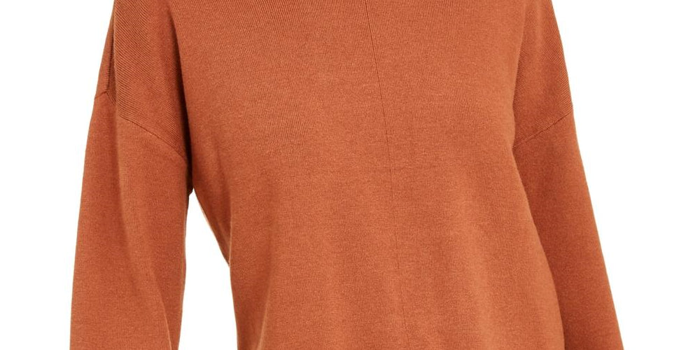Suéter feminino Bar III com gola redonda e punho contrastante, laranja, tamanho XS